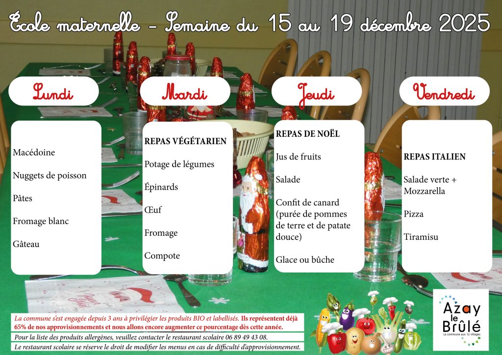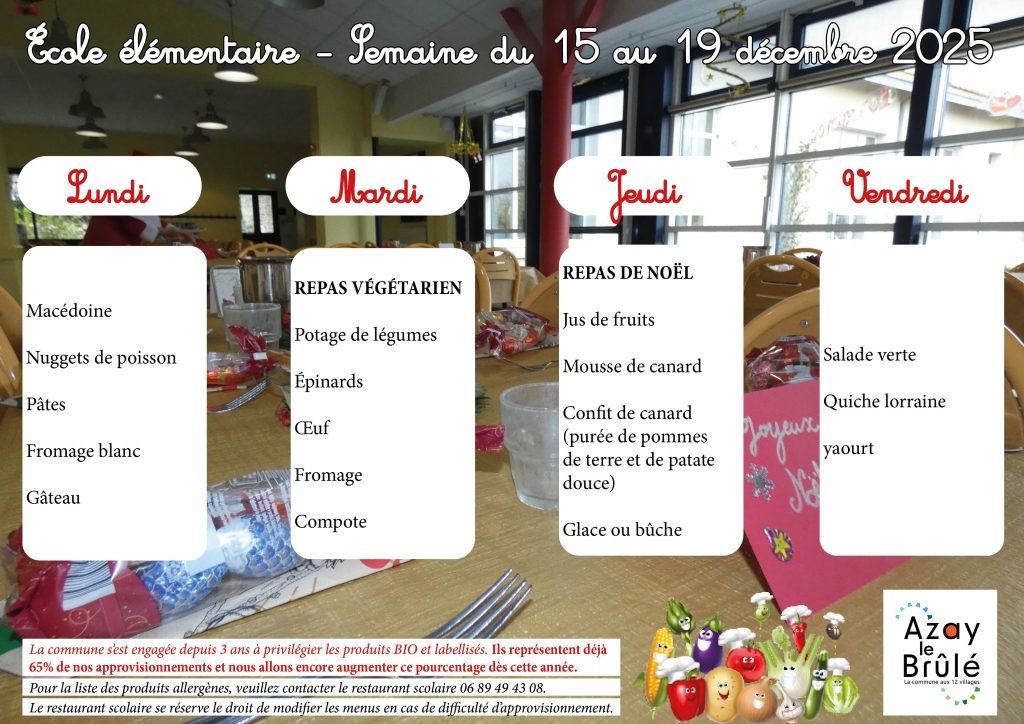 Les tarifs pour l’année scolaire 2025 / 2026 seront de 3,00 € par jour et par enfant et de 4,00 € pour les agents communaux et 4,80 € pour les adultes autres que les agents communaux (Délibération N° 2025-06-01 du Conseil municipal du 24 juin 2025).