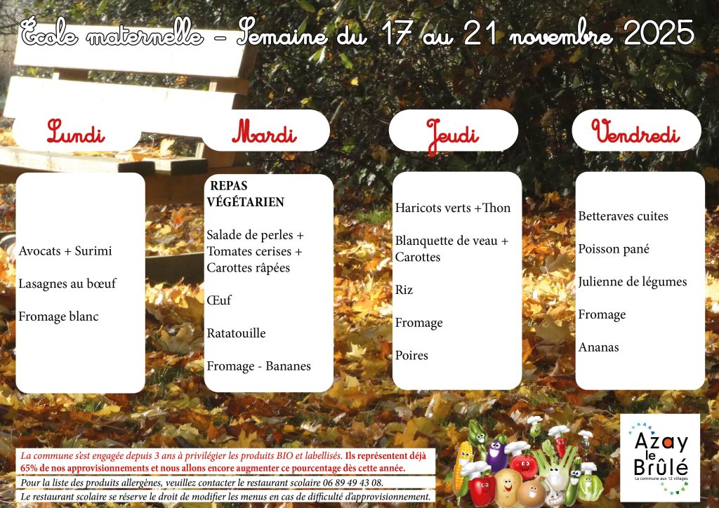Les tarifs pour l’année scolaire 2025 / 2026 seront de 3,00 € par jour et par enfant et de 4,00 € pour les agents communaux et 4,80 € pour les adultes autres que les agents communaux (Délibération N° 2025-06-01 du Conseil municipal du 24 juin 2025).