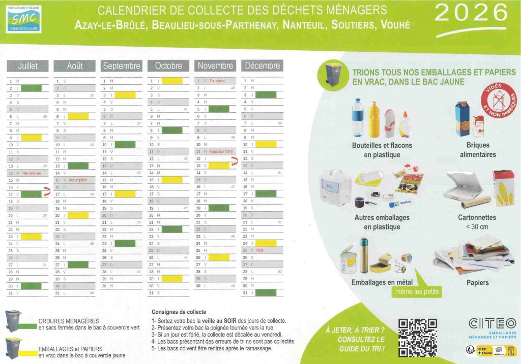 Calendrier des collectes 2026